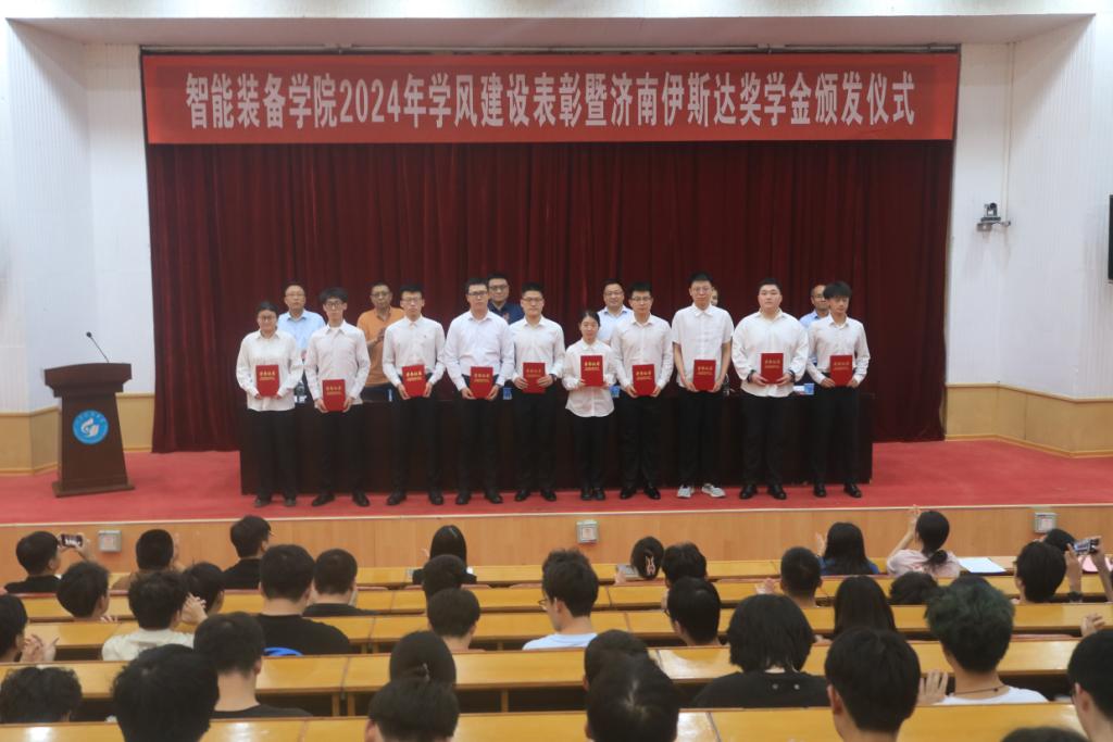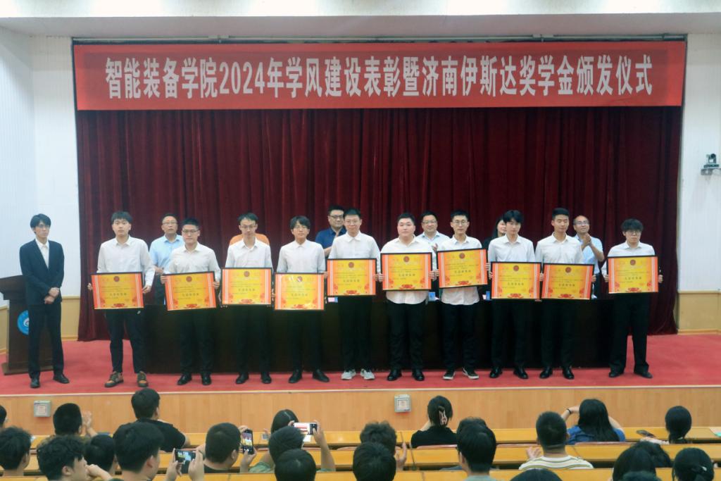 学院党委副书记兼副院长王衍国宣读了《智能装备学院关于发放济南伊斯达奖学金的表彰决定》,出席领导、嘉宾对获得2024年济南伊斯达奖学金的先进班集体、优良学风宿舍、十大优秀学生、十佳学生干部、考研优秀学生标兵进行颁奖。