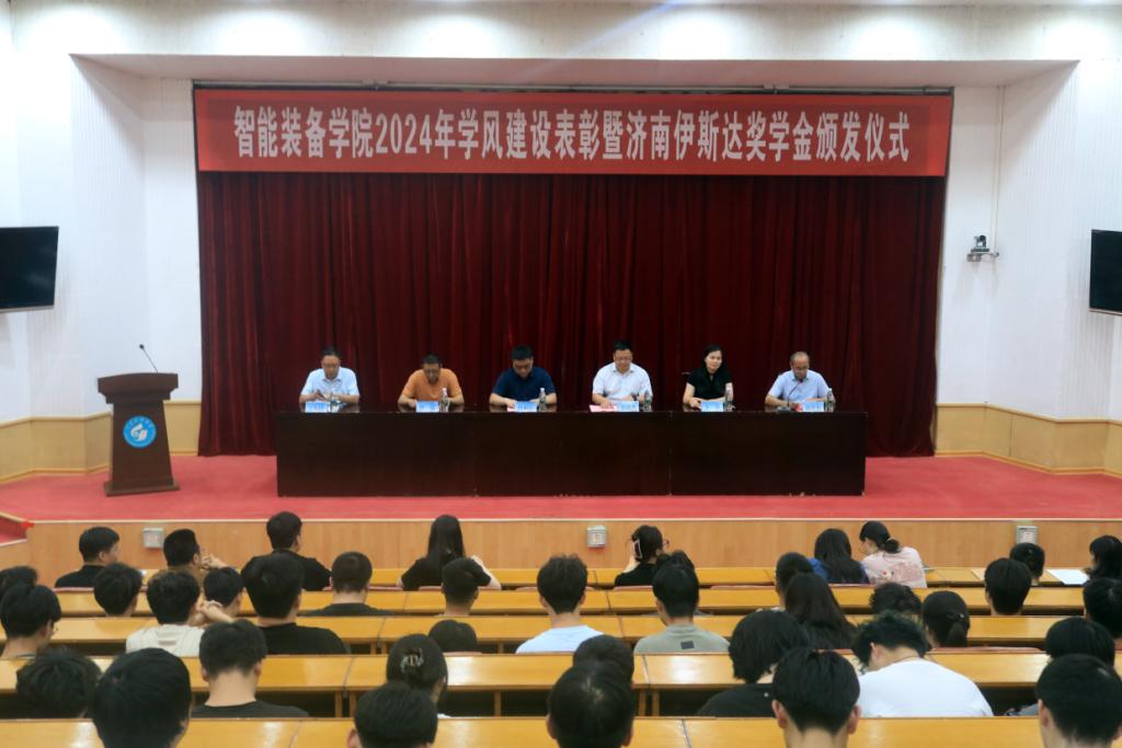 为表彰学风建设突出、成绩优异的先进集体和先进个人,6月7日,智能装备学院在四号楼报告厅举办2024年学风建设表彰暨“济南伊斯达奖学金”颁发仪式。济南伊斯达自控工程有限公司总经理孙雨辰,学院党委书记黄德杰等企业和学院相关领导参加。仪式由学院学工办主任、团委书记谢清勇主持。