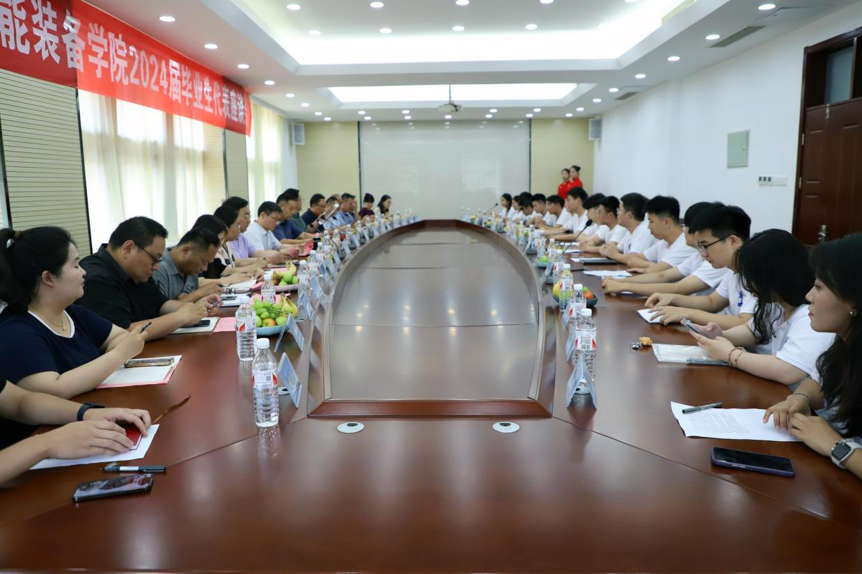 6月17日,智能装备学院2024届优秀毕业生代表座谈会在东校园召开,联系学院工作的校区管委常务副主任方亨福出席座谈会并讲话,学院党委书记黄德杰、院长彭延军等党政班子成员,各系主任、毕业班辅导员以及16名优秀毕业生代表参加座谈,座谈会由学院党委副书记兼副院长王衍国主持。