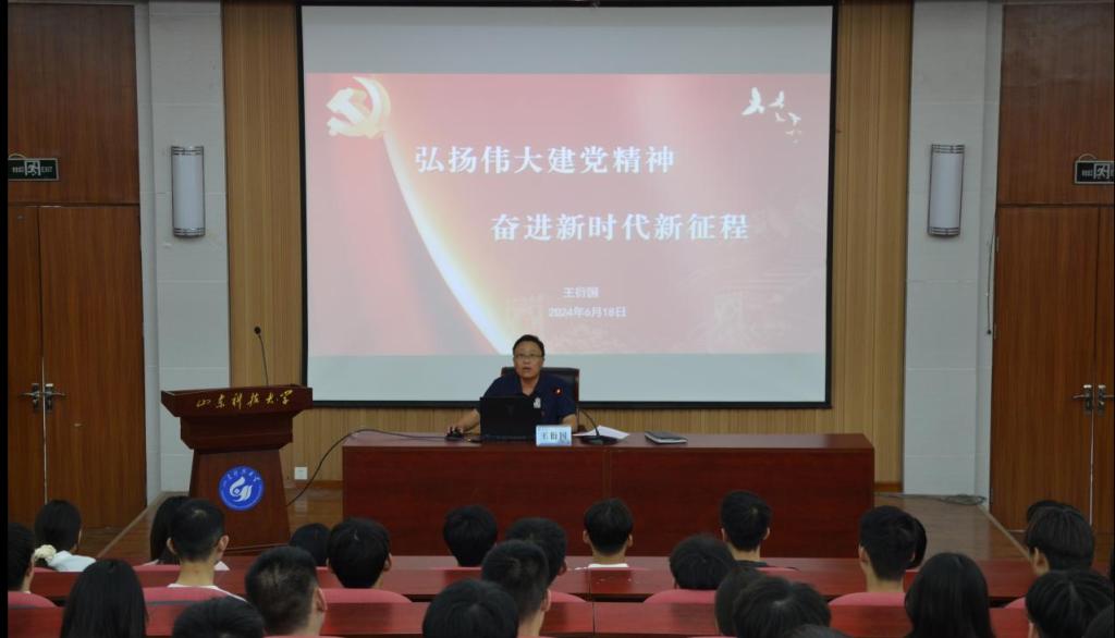 6月18日,智能装备学院党委副书记兼副院长王衍国于西校园八角楼为党员同志们讲授了题为“弘扬伟大建党精神,奋进新时代新征程”的主题党课。