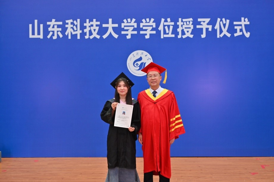 仪式上,吴正龙逐一为获得学位的毕业生正冠拨穗并授予学位证书,与每一位毕业生亲切握手,送上毕业祝福并合影留念。