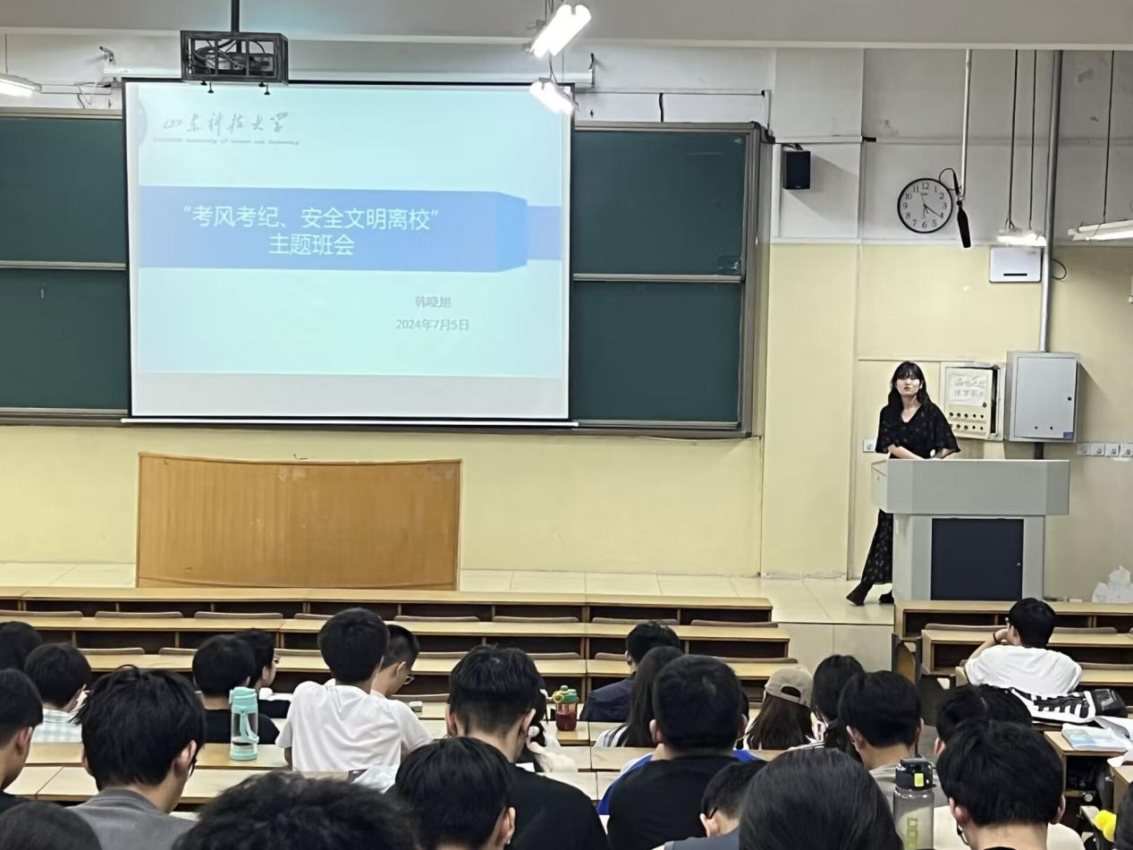 智能装备学院高度重视学生离校安全教育,通过本次安全文明离校班会,引导同学们进一步树牢安全意识,提升自身安全防范能力,积极参加社会实践,确保同学们安全充实愉快地度过暑期生活。(文:张翌菲 图:智能装备学院)