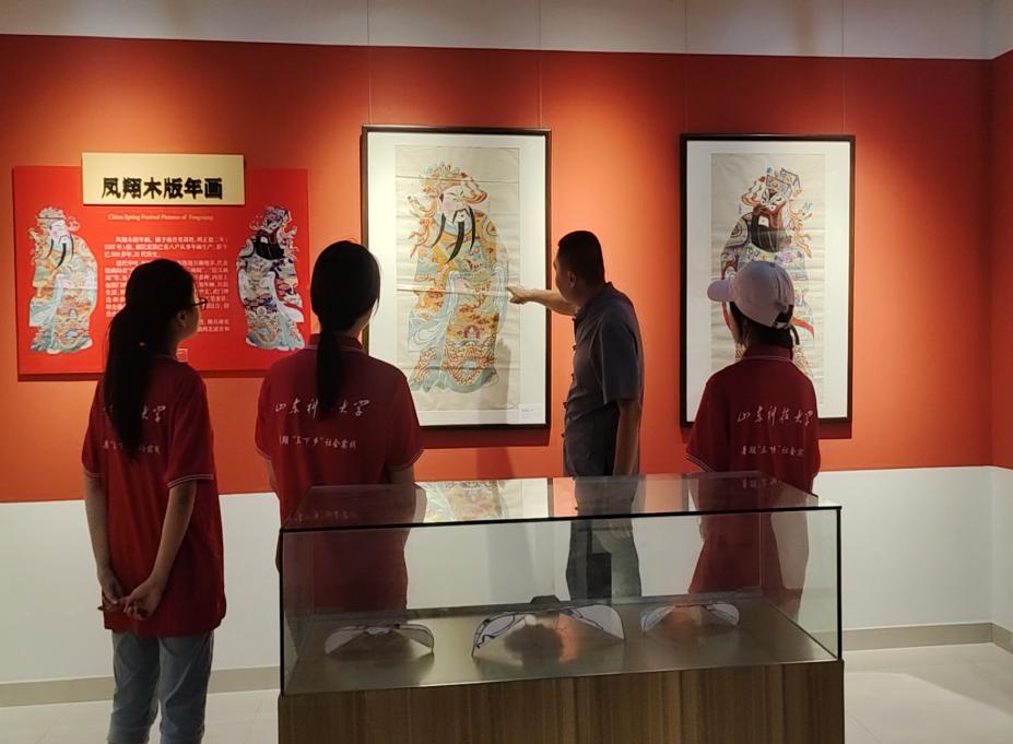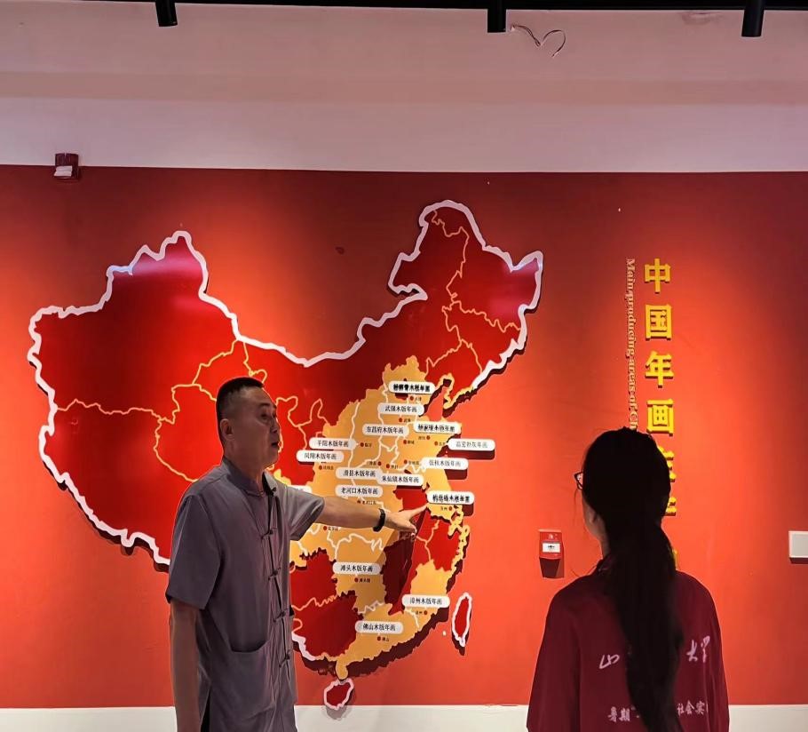 体验年画制作过后,实践团成员参观了杨家埠木版年画博物馆。该博物馆是经山东省文旅局批准、潍坊市民政部门登记成立,潍坊市文旅局为业务主管部门的一家民办非国有博物馆,也是山东省第一家年画博物馆。实践团成员有幸请到了吴学军老师为其讲解,吴馆长为我们讲述了中国各年画的产地和不同产地年画的发展历程以及杨家埠年画的独特之处。这不仅是一次视觉的享受,更是一次深刻的历史文化之旅。馆内珍藏的历代年画精品令人叹为观止,每一幅作品背后都蕴含着丰富的历史故事和文化内涵。在这里,实践团成员仿佛穿越了时空,与古老的艺术家们进行了一场深刻的对话,感受到了他们对生活美好的向往和对未来的美好祈愿。