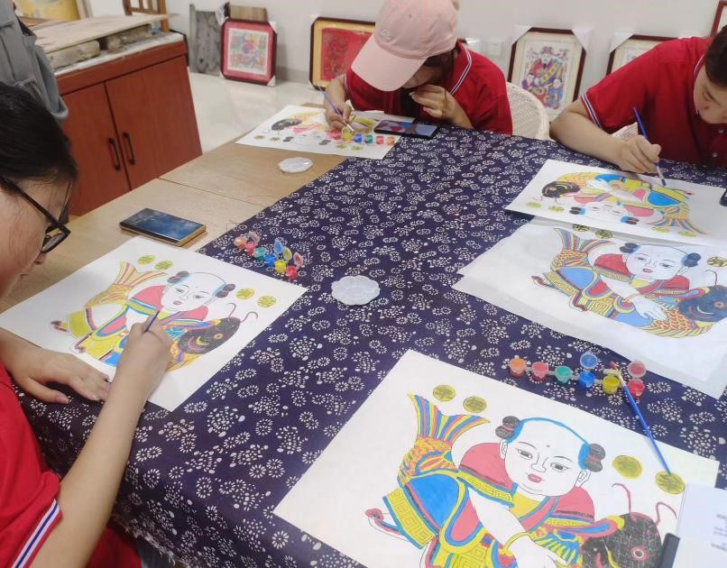 在印制年画的基础上,实践团进一步尝试了亲手绘制年画。实践团成员选择绘画的内容为年年有余娃娃画像,该画像寓意着生活富足,每年都有多余的粮食。在专业画师的引领下,实践团成员们用笔触勾勒出一幅幅充满创意的作品,将个人的情感和对美好生活的向往融入其中。
