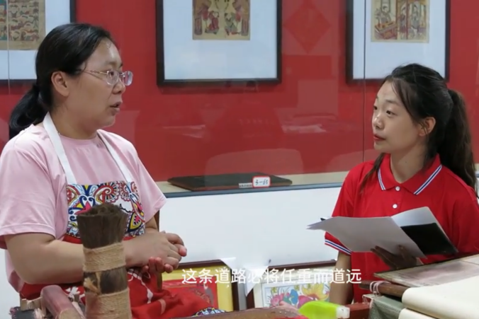 在杨家埠,传统与创新并不矛盾。实践团成员就年画发展现状中存在的问题进行了采访。王海燕老师指出现在须将木版年画与现代元素结合的创新尝试,既保留了木版年画的传统韵味,又能展现新时代的创造力与生命力。只有这样的创新交融,才能让让传统艺术焕发出新的活力,也让更多年轻人开始关注并爱上这门古老的艺术。吴学军老师指出,要鼓励年画艺术家结合现代审美趋势,创作出既具有传统韵味又符合现代审美的年画作品。可以引入现代设计元素,如卡通形象、流行色彩等,使年画更加贴近现代生活。开发年画的多元化应用场景,如将年画元素融入文创产品(如帆布包、手机壳、书签等)、家居装饰、包装设计等领域,以扩大市场需求。最让实践团成员感动的是,当地艺术家们不仅秉承传统,更在不断创新中寻找新的发展方向。他们把传统木版年画与现代元素结合,创作出了一系列新颖独特的艺术作品,让这项古老艺术焕发出新的生命力。这种对传统文化的尊重与创新精神,深深激励着我们每一位参与者,让更多的人认识到传统文化的保护与传承并非遥不可及,而是生活中的一部分,是可以被现代人所接受和喜爱的。