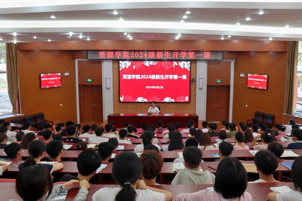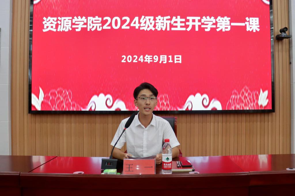 为帮助新生迅速融入大学生活,开启人生新篇章,9月1日,资源学院在八角楼召开2024级新生开学第一课,新生辅导员王一担任主讲,学院全体2024级本科新生参加。