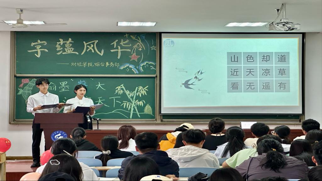五千年文化溯源,三千载诗词雅韵。为了弘扬传统文化,激发学生对诗词文化的热情和传统文化的热爱,增进学生对中华文化的认同感和自豪感,10月14日,财经学院在4号楼210教室举办了“翰墨财经,汉字天下”暨字蕴风华活动。