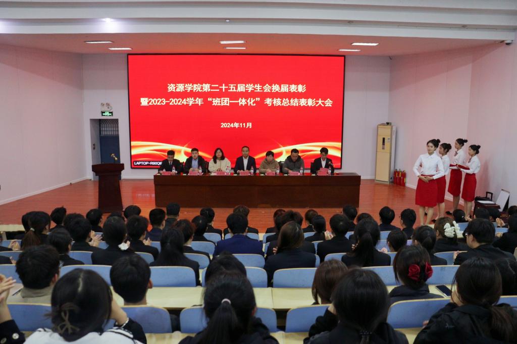 11月13日,资源学院在1B117隆重召开第二十五届学生会换届表彰暨2023-2024学年“班团一体化”考核总结表彰大会。资源学院党委副书记兼副院长程家国、学工办主任兼团委书记洒艳、全体辅导员出席,学生会全体成员及学院主要学生干部参会。大会由学生会秘书长王一主持。