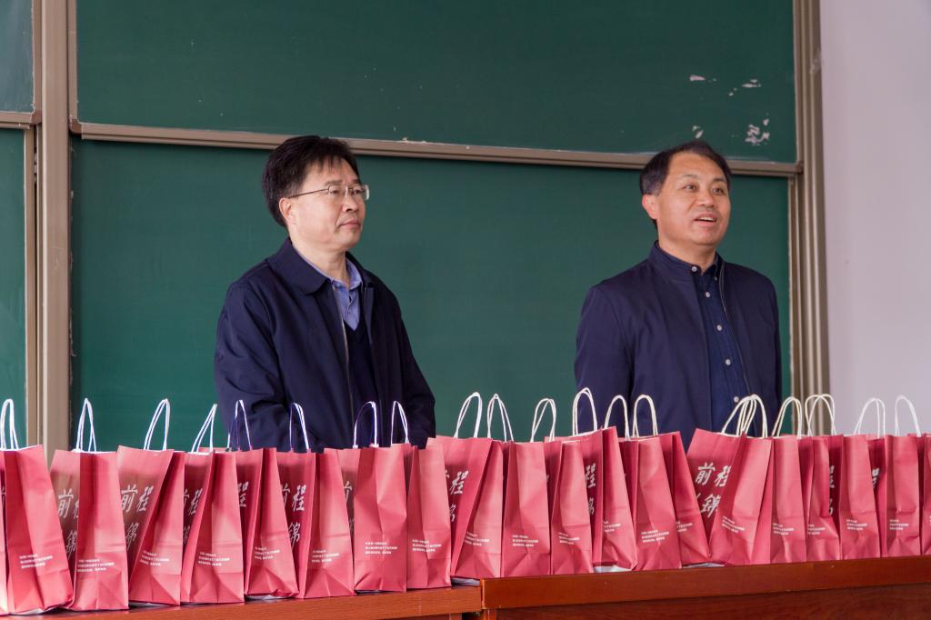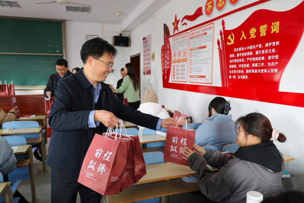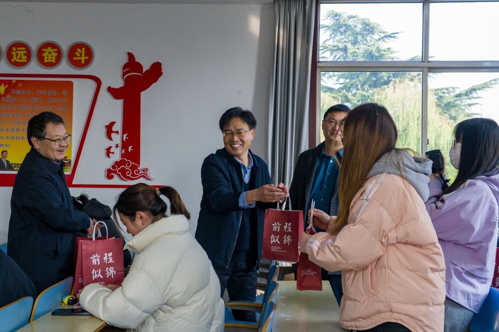 学院领导老师们前往考研自习室,为考研学子送上暖心大礼包,一边发放礼包,一边与考研学生进行亲切交流,叮嘱同学们在考研冲刺的最后阶段要注意身体,劳逸结合,鼓励同学们全力以赴、稳定心态,争取一战成硕。学院党委书记陈炳志和院长刘庆志代表学院全体师生,以“轻松备战,成功上岸”寄语考研学子,祝愿每一位考研学子都能带着学院的期盼与祝福,勇敢追梦,达成所愿!
