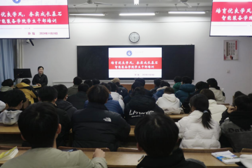 11月29日,智能装备学院于东校园5号楼103举题为“培育优良学风,夯实成长基石”的学生干部培训会,会议由辅导员孙灿主持,24级部分班委参加会议。