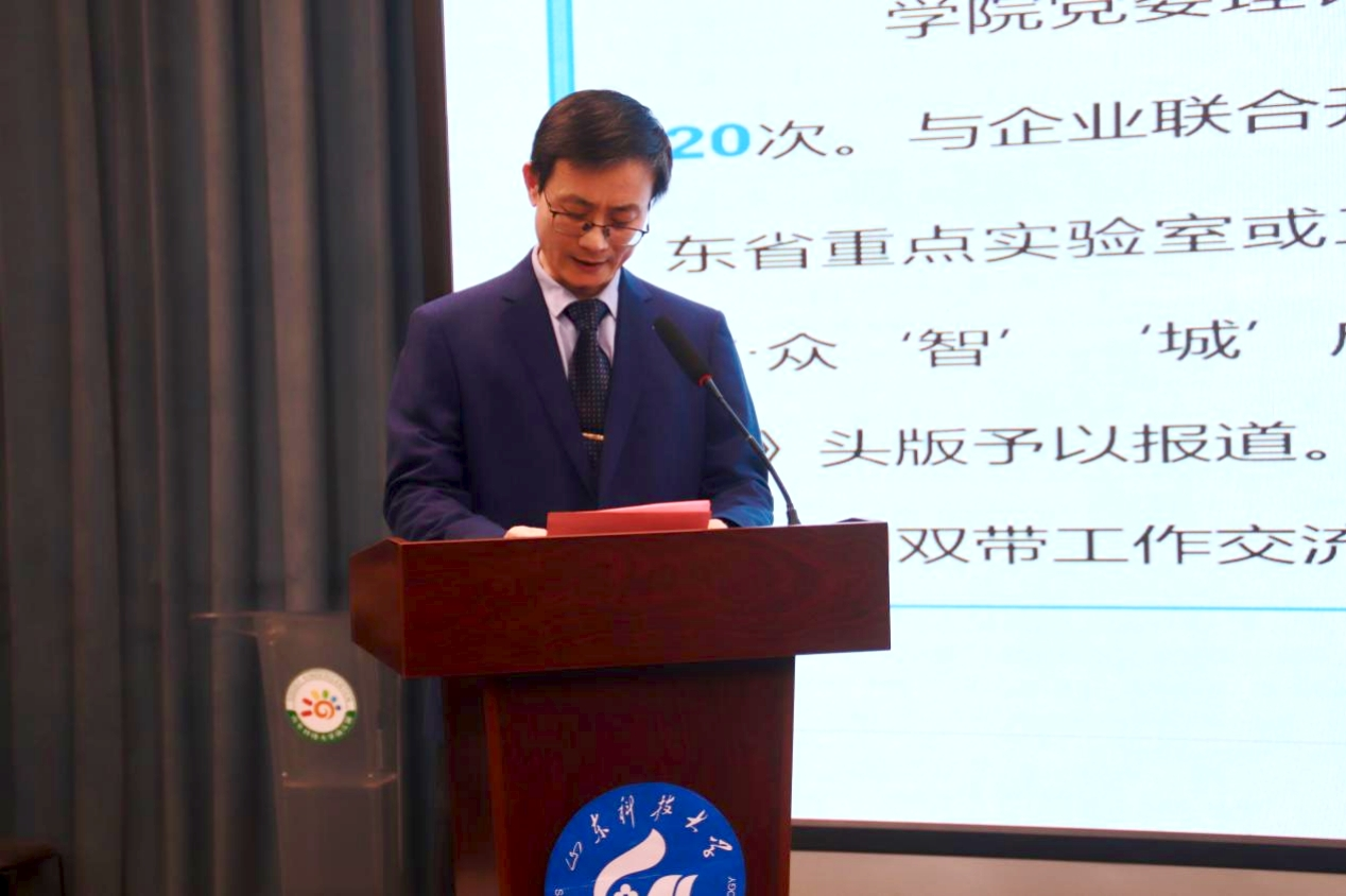 大会邀请了泰安校区党委常务副书记吴正龙、管委常务副主任方亨福、管委副主任兼后勤管理部主任逢杰文、管委副主任兼教务部主任贾宏俊、管委副主任兼党政办公室主任朱庆豪出席,与智能装备学院师生欢聚一堂,辞旧迎新,畅谈未来。