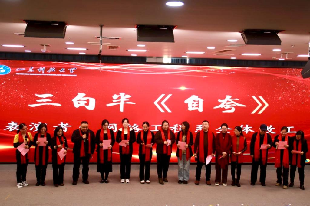 大会不仅有鼓舞人心的颁奖仪式,更有热闹非凡的节目表演,老师们以激情为笔,以才华为墨,共同绘就了一幅幅动人心弦的画卷。传统曲艺三句半《自夸》以其独特的韵律,诉说着网络工程专业和学院取得的优异成绩,传递着师生们的自豪与自信。歌曲《我的好兄弟》旋律深情,唱出了友情的温暖与力量,激励大家如兄弟挚友般团结友爱,在教育之路上并肩前行。中华优秀传统文化是中华民族的根和魂,一首诗朗诵《中华颂》,气势恢宏,声势澎湃,给现场的每一个人带去了生生不息的力量。无论在何时,都要拥有“绽放”的力量,歌曲《绽放》带我们到达了那个战火纷飞的年代,给予我们砥砺前行的强大信念。音符在琴键中流转,谱出一首《土耳其进行曲》曲欢快悠扬,点燃了与会人员欢快的笑容。前路虽艰难险阻,但愿你我都《如愿》,表达了对学院以及教职工的美好祝福,更包含希望,带领我们进入更加昂扬向上的2025。古典舞《芳春行》,舞者曼妙的身姿,呈现了一场视觉盛宴。伴随着轻快的脚步,《朋友》来到了我们身旁,不论我们身处何地,朋友永远是我们的港湾。《千年等一回》又何尝不是诉说着人与人之间的缘分,今天在这里欢聚一堂,更是人生中珍贵的回忆。最后的合唱歌曲《相亲相爱》温馨动人,紧扣盛会主题,表达了师生们对未来的共同期待与梦想。