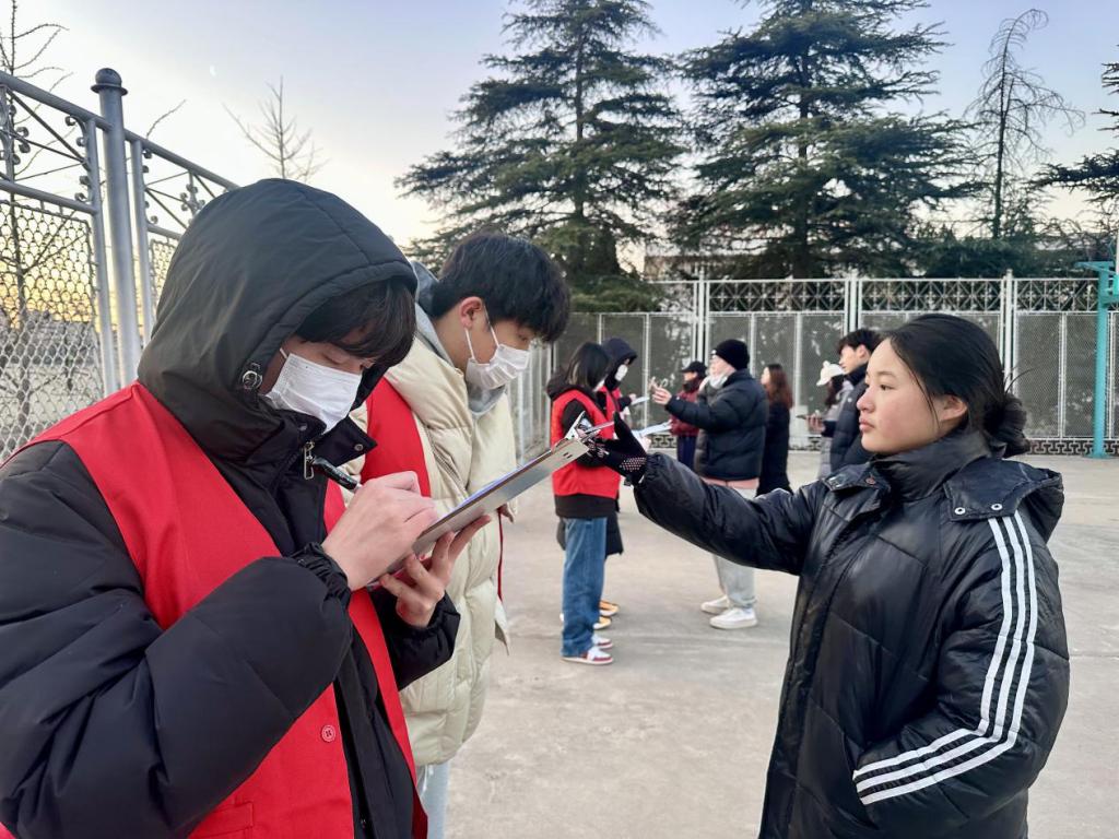 2月24日,财经学院开展2025年新学期第一次校园早签活动,学院辅导员到现场查看同学们早签情况。