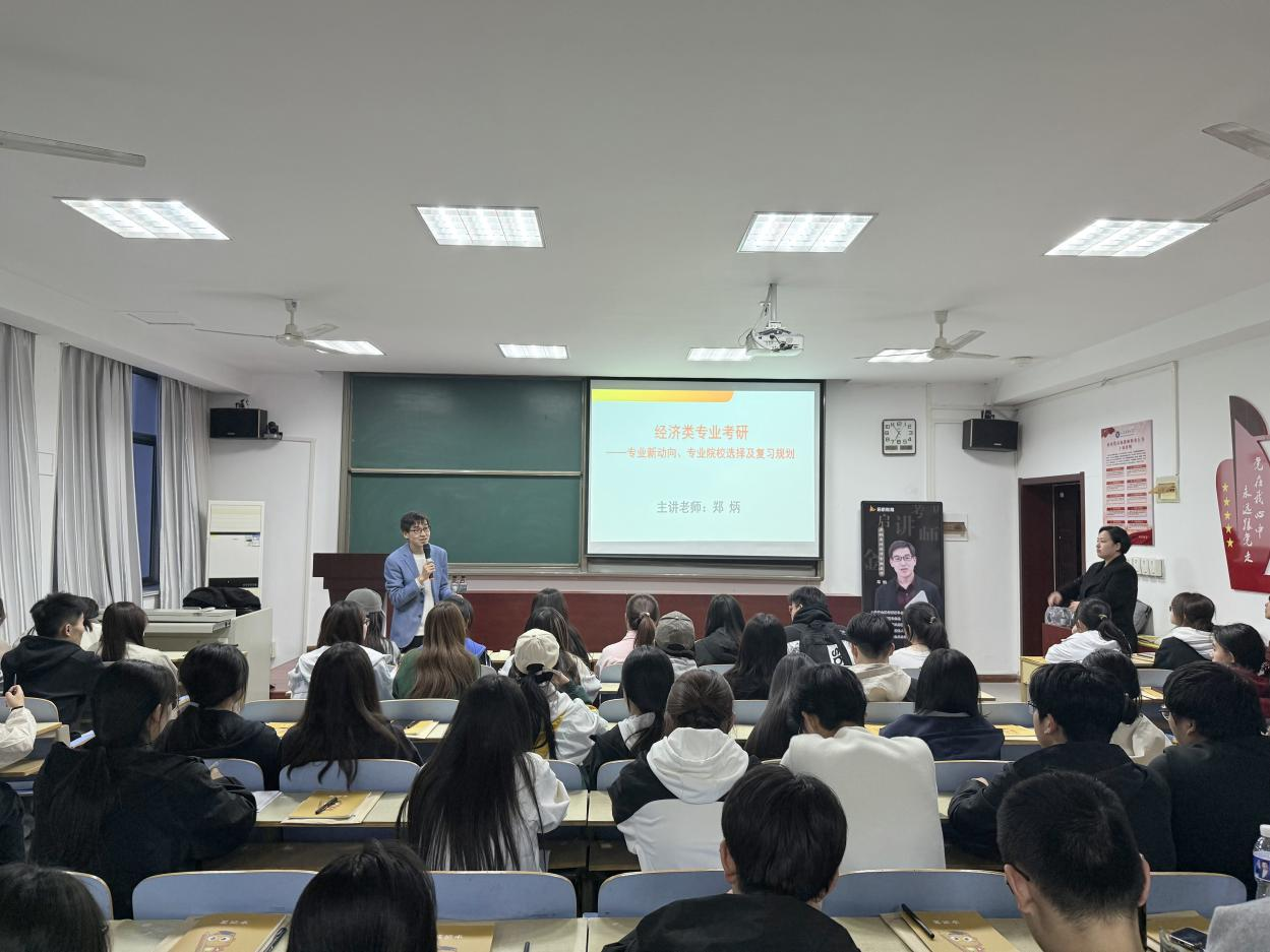 在讲座中,郑炳围绕考研院校选择、专业方向分析、备考策略等内容展开详细讲解。通过对比分析历年国家分数线,揭示了学术型硕士与专业型硕士之间的差异,并结合实际情况提供了科学的备考策略,并深入剖析经济学各专业考研特点、就业前景,以及考试科目、参考书目等差异,为同学们定制极具针对性的备考策略。