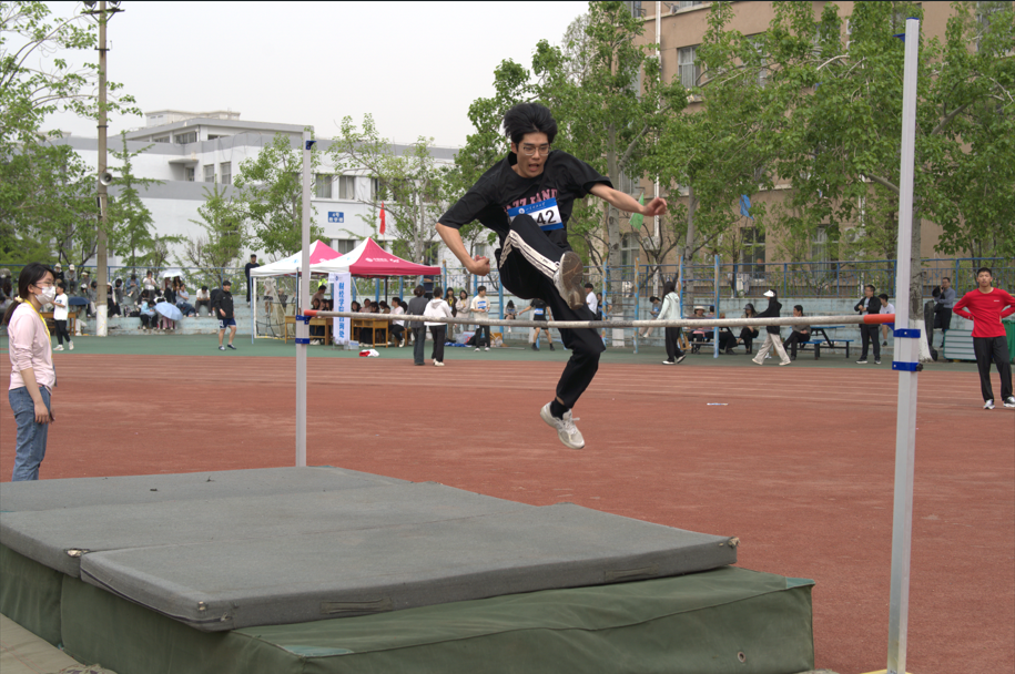 助跑如风,踏跳似箭,双腿在空中利落劈斩,身体划出一道凌厉的弧线,轻捷地掠过横杆