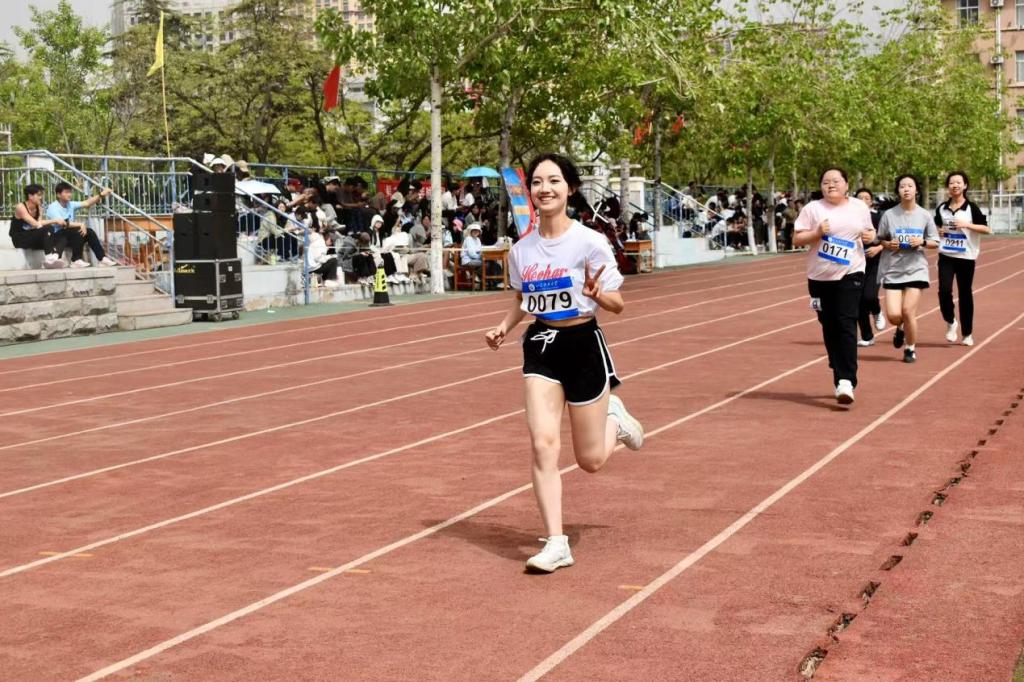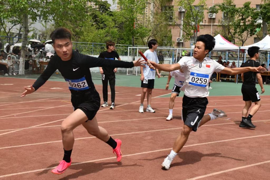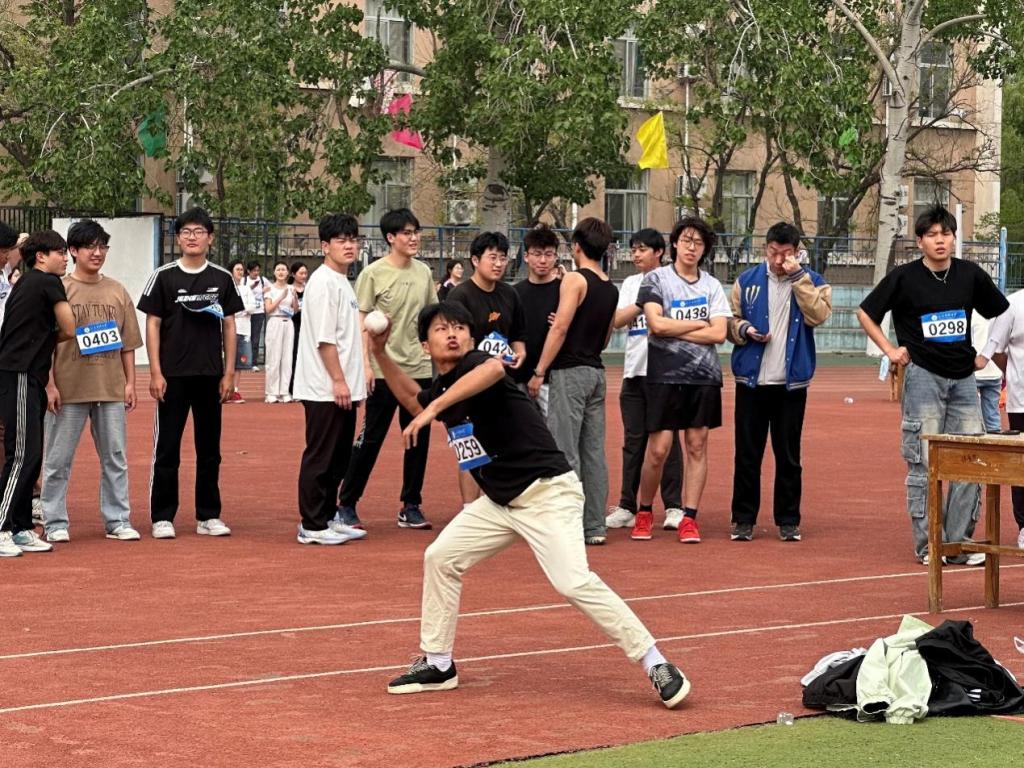 在比赛赛场同学们热情助威,为每一位选手送上掌声与鼓励。在激烈的4×100米接力赛中,财经学院的队员们默契配合,每一棒的交接都凝聚着信任与协作,以风驰电掣般的速度冲向终点,赢得阵阵喝彩;1500米和800米长跑项目中,选手们以坚定的步伐和顽强的毅力征服赛道,即使体力透支也绝不放弃,用行动诠释了“突破自我”的体育真谛;跳高、跳远赛场上,运动员们一次次挑战身体极限,无畏失败,每一次起跳都是对高度的全新突破;垒球比赛中,奋力投掷的瞬间,力量与决心在空中划出完美的弧线。