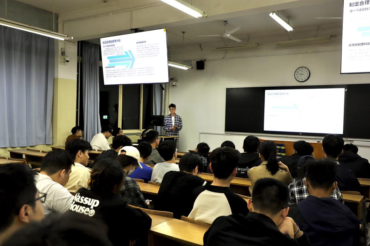 本次分享会邀请数位在考研中取得优异成绩的学长担任主讲嘉宾,他们结合自身备考经历,从院校与专业选择、资料收集等前期准备工作讲起,强调要综合考虑个人兴趣、专业前景和院校报录比等因素,理性选择目标。同时,他们详细分享了各学科的复习时间安排,并给出了学科复习建议,英语要注重词汇积累和真题练习,每天坚持背诵单词、分析长难句,数学则需扎实掌握基础知识,通过大量刷题巩固提升。最后,他们鼓励大家在备考过程中保持积极乐观的心态,劳逸结合。