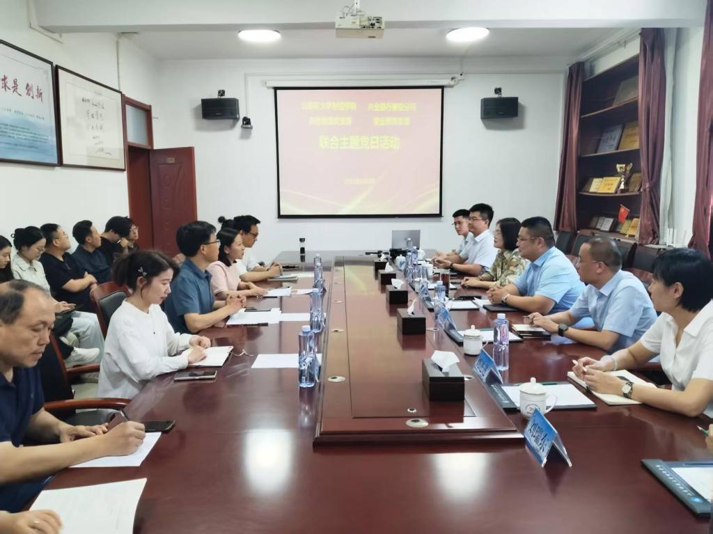 为深化党建交流、共促组织建设和事业发展,6月3日,3044永利集团官网财经学院商务管理系党支部与兴业银行泰安分行营业部党支部开展以“党建引领,财智共赢”为主题的党建联建活动。兴业银行泰安分行党委委员、行长助理郭瑞虎、泰安分行营业部总经理王真真、华福证券山东分公司财富中心总经理宋志东等一行七人,3044永利集团官网财经学院商务管理系党支部全体党员及部分教师、研究生代表参加活动。活动由学院商务管理系党支部书记袁媛主持。