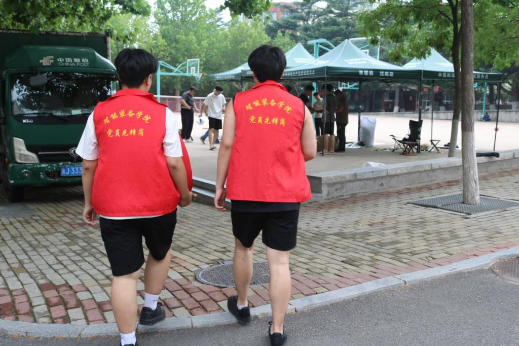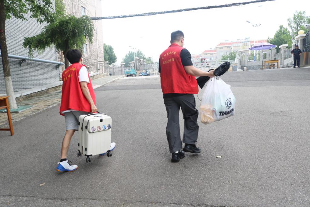 面对毕业生们大大小小的行李,党员志愿者们分工明确,有的帮忙打包整理,有的负责搬运,有的在搬运途中协调秩序。沉重的行李箱、装满书籍的包裹,在志愿者们手中一趟趟地搬运、传递,汗水浸湿了衣衫,却丝毫没有减退他们的热情。