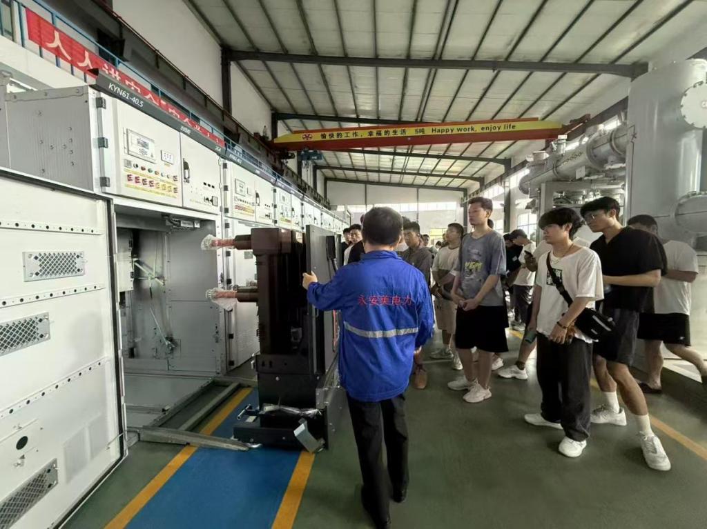 为深化产教融合,提升学生实践能力,7月1日,智能装备学院过程装备与控制工程系副主任郭凡灿、电气工程与智能控制系副主任郑锋带领过程装备与控制工程、机械设计制造及其自动化、电气工程与智能控制等专业师生共180余人赴泰安市山东永安美电力科技有限公司参观实习。