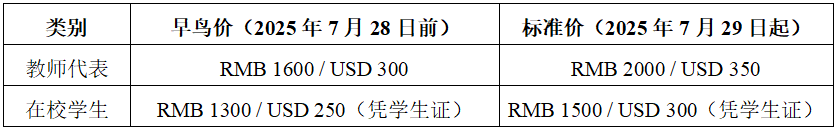 未提交长摘要或文章的拟参会人员,也可于上述时间前完成注册,享受早鸟价;7月28日后注册的参会人员将按照标准价缴纳注册费。