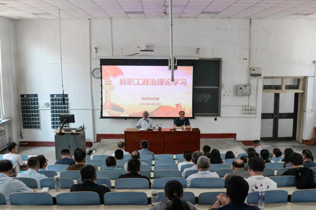 6月24日,资源学院在1A107开展全体教职工政治理论学习。学院党委书记高尚宇主持学习并讲话。
