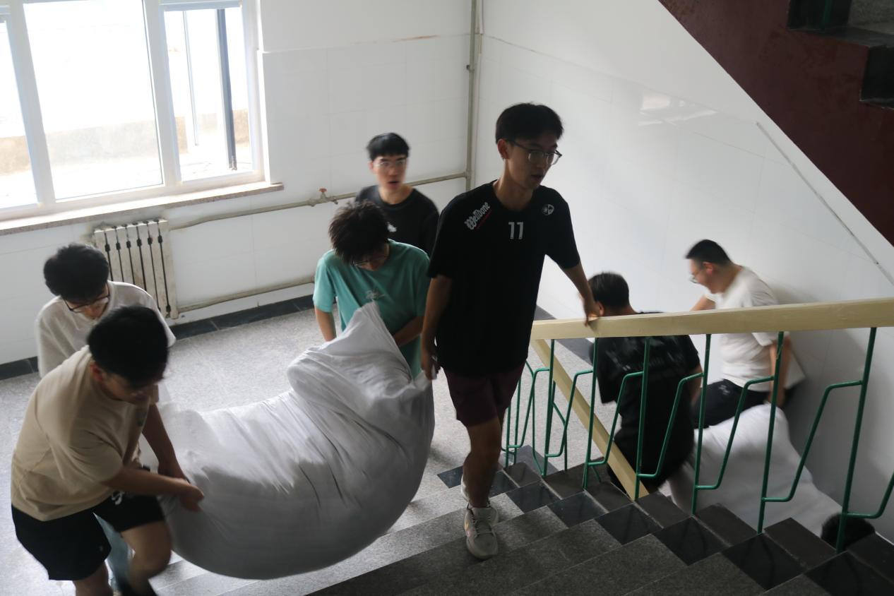 前期,辅导员结合宿舍分布与卧具订购情况制定细致工作方案,对学生干部及志愿者开展流程讲解与安全培训,重点强调卧具核对、卧具搬运、床位整理等内容。志愿者们先核查卧具数量,有序搬运并放置到对应床位,再进行床铺整理和宿舍清扫,学生兼职辅导员对宿舍安全隐患进行排查,整个过程分工明确、行动高效。