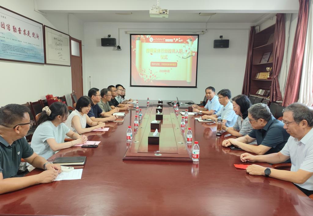 在第41个教师节来临之际,9月9日下午,财经学院举办了2025年退休教师荣休暨新教师入职仪式。学院领导班子成员、荣休教师代表、新入职教师、各系主任及教师代表出席仪式,仪式由学院党委委员、综合办公室主任程滨主持。