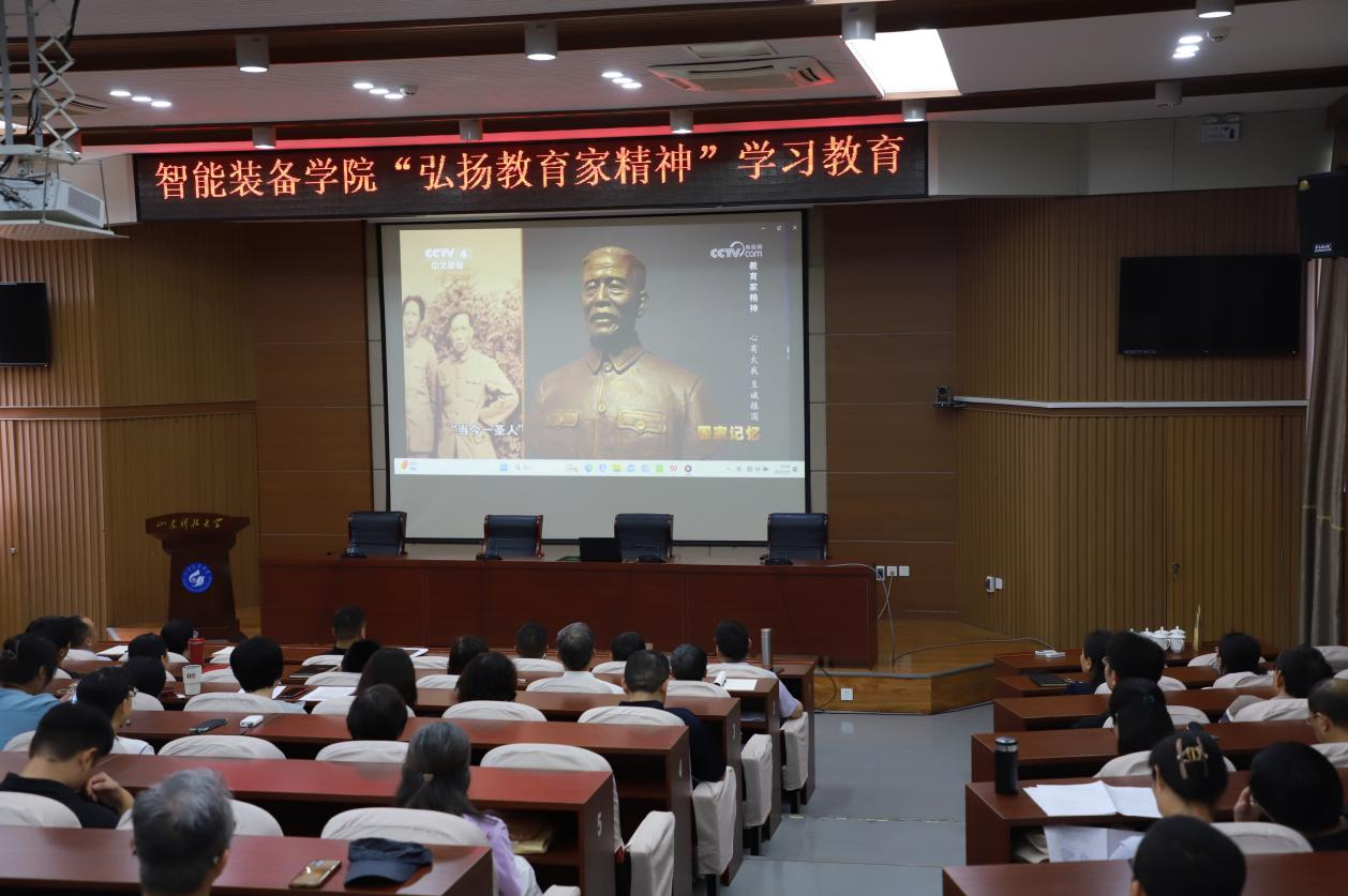 为深入学习贯彻习近平新时代中国特色社会主义思想,大力弘扬教育家精神,持续加强教职工思想政治与师德师风建设,9月9日,智能装备学院于1号楼报告厅开展“铸魂强师”师德师风建设暨“弘扬教育家精神”学习教育活动,会议由学院党委书记黄德杰主持,全体教职员工参加。