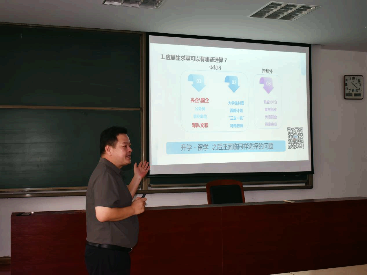 宣讲会上,司伟首先剖析了毕业生面临的就业选择难题,讲解了体制内与体制外工作的特点、优势及挑战,帮助同学们厘清不同就业路径的差异。同时,他围绕简历制作、面试技巧等方面分享求职妙招,为同学们传授实用方法,解答求职过程中的困惑。司伟深入浅出地讲解让同学们感受更加深刻,助力大家精准定位、高效求职。