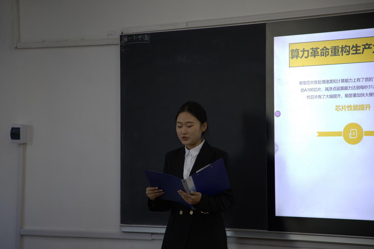比赛以ppt展示的形式进行,8组参赛选手围绕“AI与时代发展”主题依次展演。有的选手从AI技术溯源切入,结合典型案例剖析其社会影响;有的选手以智能家居、智能交通等生活场景为载体,直观呈现AI技术的应用价值;有的选手聚焦未来展望,围绕AI伦理议题展开思辨并提出应对思路,充分展现了独到的见解,比赛现场氛围热烈。