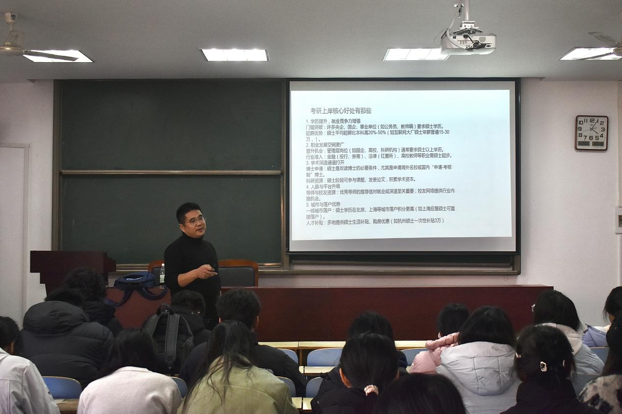 此次专题讲座的举办,是学院深化全面发展育人体系、拓宽学生发展渠道的重要举措,不仅为学生搭建了优质的升学信息交流平台,更有效提升了学生学业规划的科学性与前瞻性。下一步,财经学院将持续聚焦学生成长成才需求,整合优质教育资源,定期开展考研指导、职业规划、留学咨询等系列活动,为培养德智体美劳全面发展的高素质财经人才提供精准化服务支撑。(文/图:王鲤源)