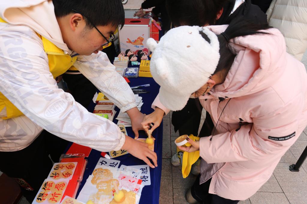 活动以“红绳盲盒”与幸运小兽立牌为载体,将祝福转化为可触摸的温暖。同学们在许愿牌上写下“此程必上岸”等心愿与祝福,抽取装有定制文创、文具或零食的盲盒礼包;现场提供的限定明信片及棒棒糖,也让备考的疲惫在甜意中悄然消散。不少考研学子驻足拍照,将这份来自学院的牵挂与鼓励,定格为奋斗时光里的温暖印记。