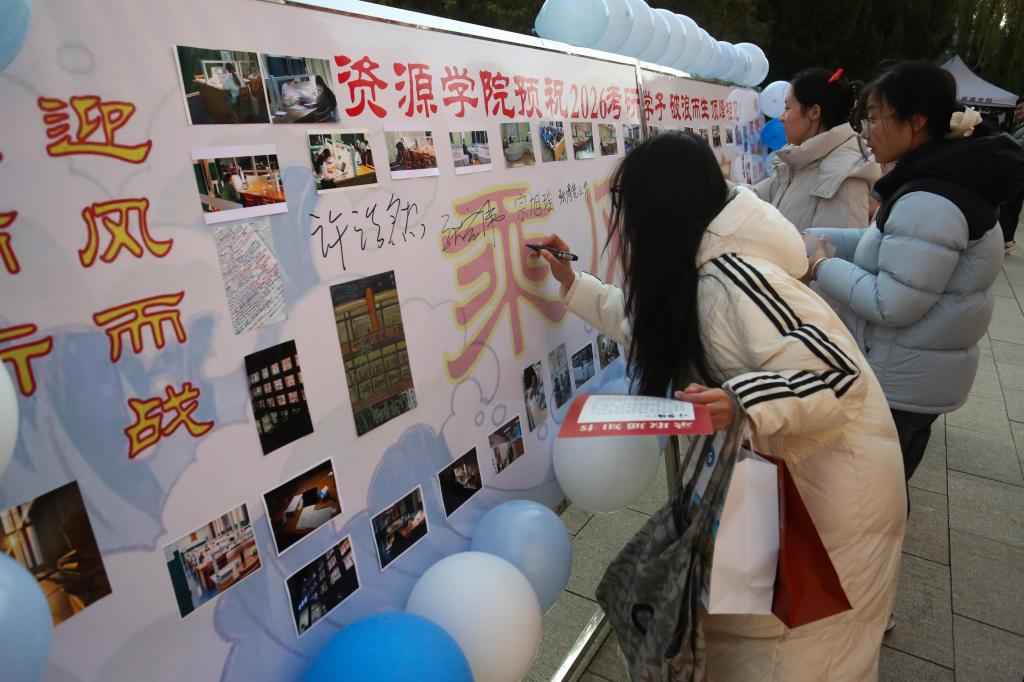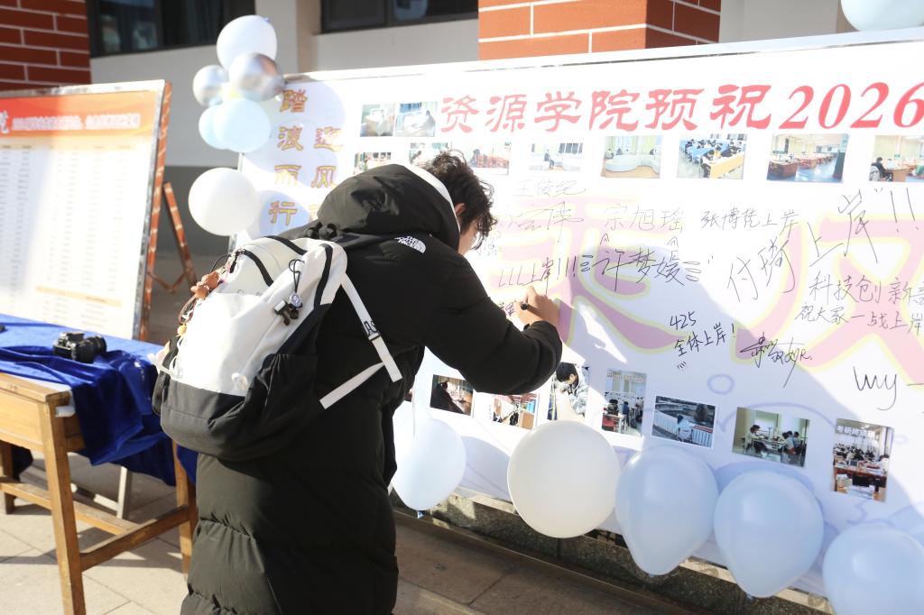 光影定格奋斗,笔墨承载深情。本次活动不仅真实记录了考研学子拼搏前行的生动足迹,也进一步营造了全院温情萦绕、聚力前行的温暖氛围。愿每一位正在奋战考研的资源学子,落笔从容,不负耕耘,终抵理想的彼岸。(文:耿晓涵 图:高喆 史一凡 黄秋涵 刘梦想)