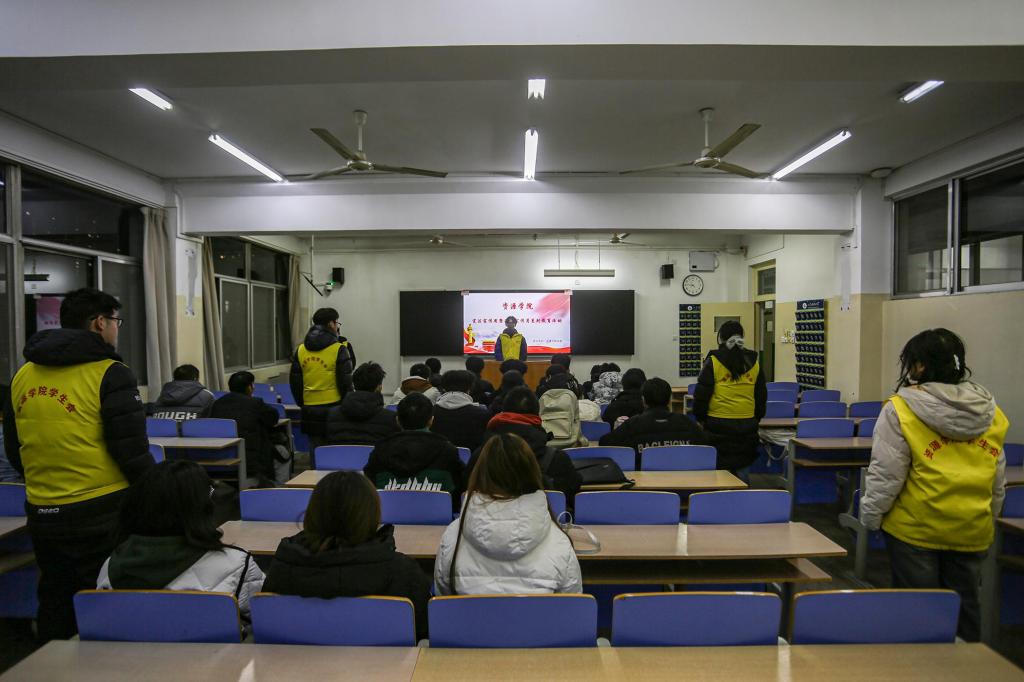 活动中,宣讲人围绕“宪法与公民生活”这一核心主题展开讲解,通过解读宪法条文与生活案例相结合的方式,深入阐释了宪法在国家治理、社会运行和个人权益保障中的根本地位。随后,同学们共同观看宪法主题宣传片,从生动的影像叙事中深刻理解了我国宪法的发展历程、核心要义和实践价值。视频内容将抽象的法律条文转化为具体的生活场景,使同学们直观感受到宪法对公民受教育权、劳动权等基本权利的保障作用,进一步增强了维护宪法权威、践行宪法精神的自觉意识。