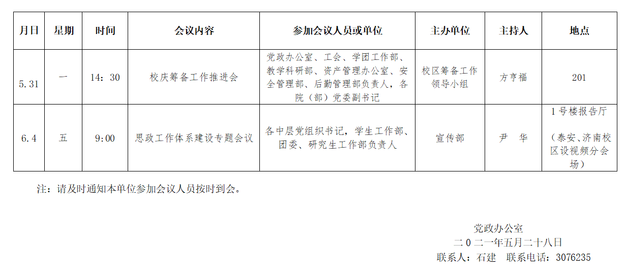 泰安校区第十四周会议表