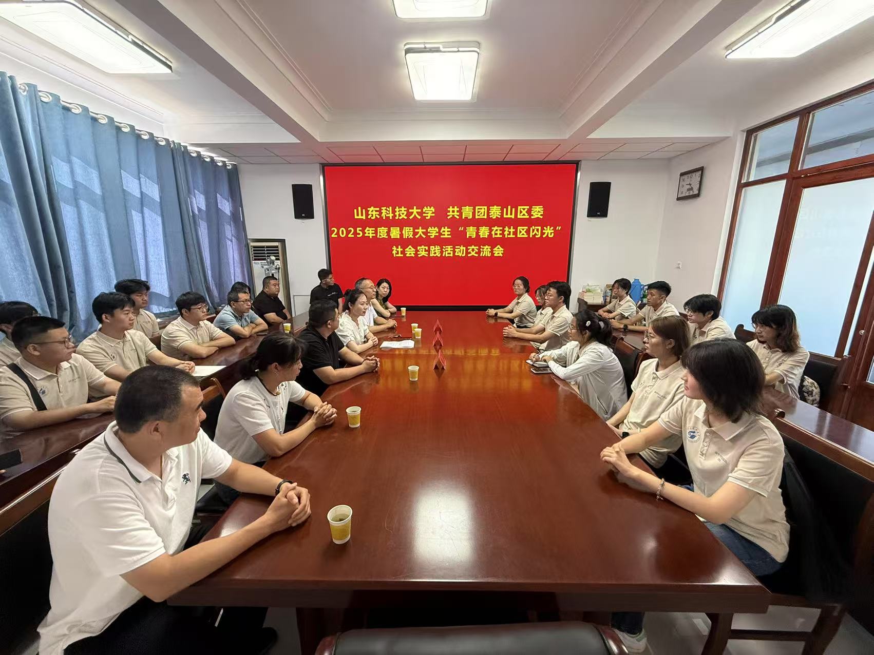 7月17日,校区团委与共青团泰山区委联合举办“青春在社区闪光”暨暑期大学生社会实践活动交流会。泰安校区团委书记侯静娴、共青团泰山区委书记田静,校区团委相关负责人、挂职大学生代表以及泰山区相关部门、社区代表参加活动。