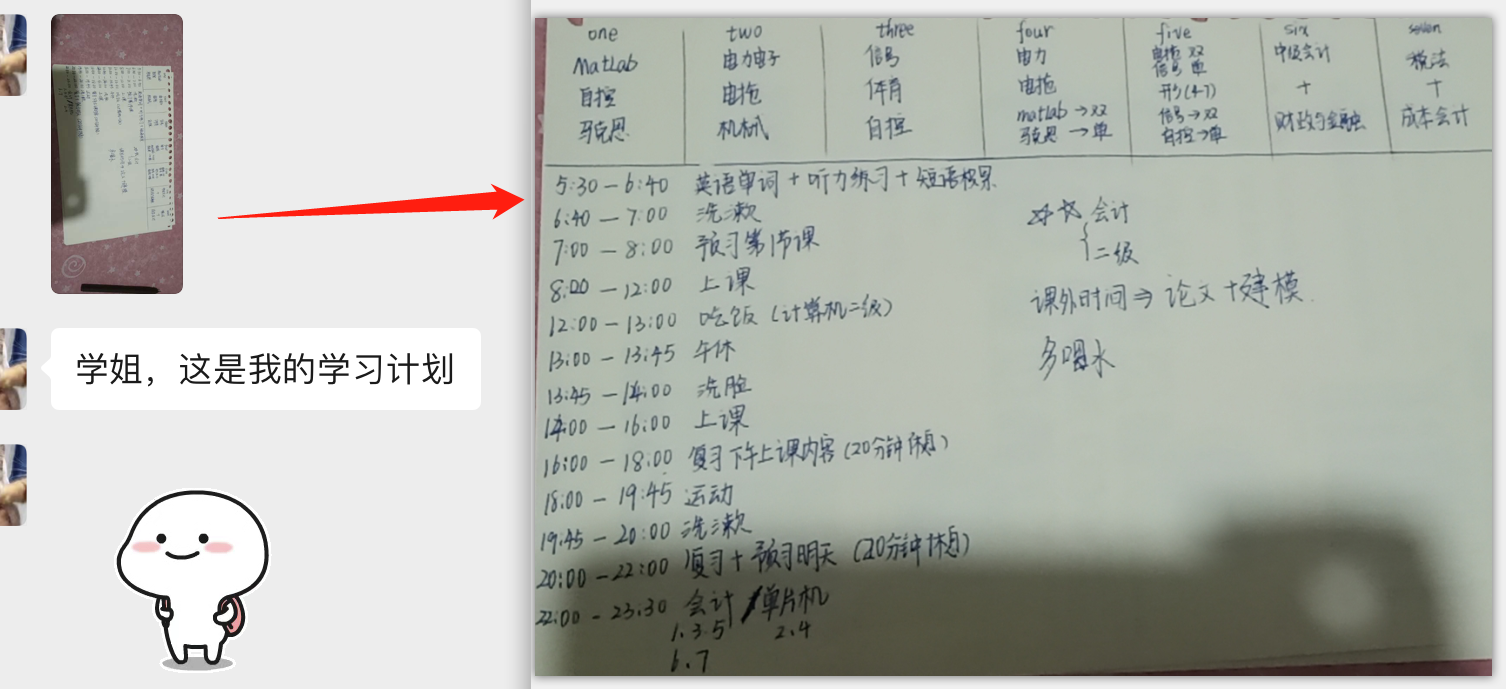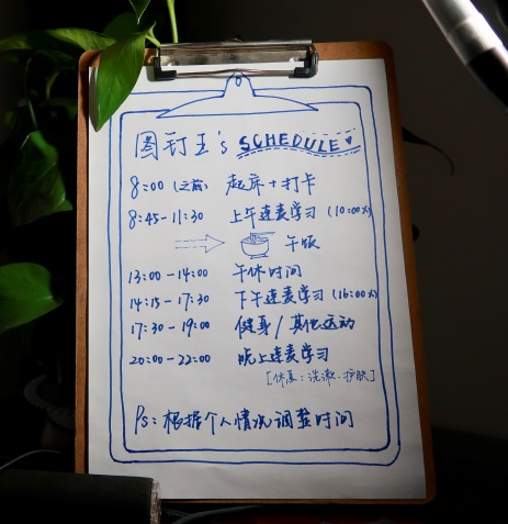 直播中,王子安同学从长期规划和短期规划两方面和大家一起分享了在家高效率学习的方式。她介绍说,就长期规划而言,不同年级的同学需要做的工作不同,如大四的同学除了完成毕业论文,还要进行简历的撰写和考研复试的准备,复试包括英文的自我介绍和专业课的巩固。直播中她还给出了目标确定、资料搜集、简历制作等方面的技巧。而对于短期规划来说,她给同学们展示了如何做规划记录表和时间表,并强调了学习之余休息的重要性。
