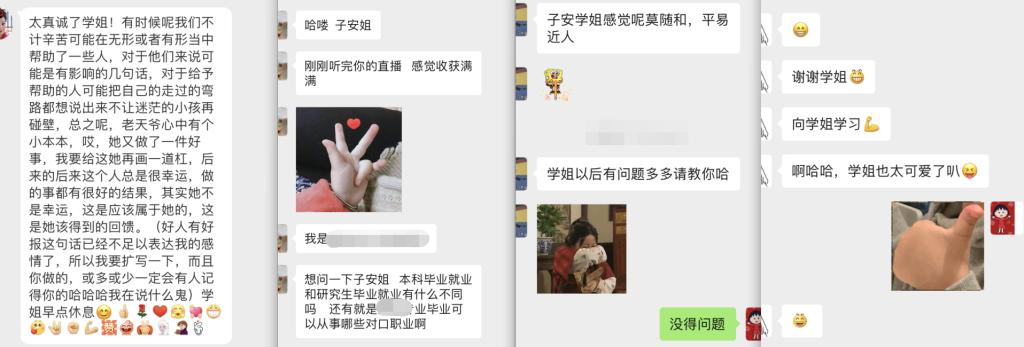 直播最后阶段还进行了Q&A问答环节,同学们与王子安同学积极互动,直播现场气氛积极活跃。王子安同学耐心地为大家答疑解惑,并告诉学弟学妹在日常学习中如何做到学习工作两不误,如何养成良好的英语学习习惯等等,并多次强调在学习中“坚持”的重要性;引导学弟学妹们从当前出发确立好目标,早做准备,主动把握;并结合自身体会,建议大家在搞好学习的同时,也要多参加各种课外活动和社会实践。
