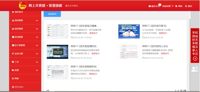 校区团委、各学院(部)团委认真组织动员所有团支部充分利用“智慧团建”系统,每天开展健康打开制度收集支部成员的健康状况信息,每周召开一次全支部线上会议,召开支部大会及时传达国家、省和学校、校区有关疫情防控的文件和要求,了解新型冠状病毒感染的肺炎疫情防控的重要性,帮助支部团员提高防疫意识和分辨能力,做到不信谣、不传谣,用实际行动弘扬青春正能量;倡导各班级、个人通过各种形式向疫区奉献爱心;号召同学们共同遵守“戴口罩、勤洗手,不出门、不聚会,不恐慌、不传谣,出远门、要隔离,有异常、要上报”承诺,保持良好心态,为身边亲人和好友做出良好示范。活动涉及到校区(学院)243个团支部、共计9000余名团员青年。