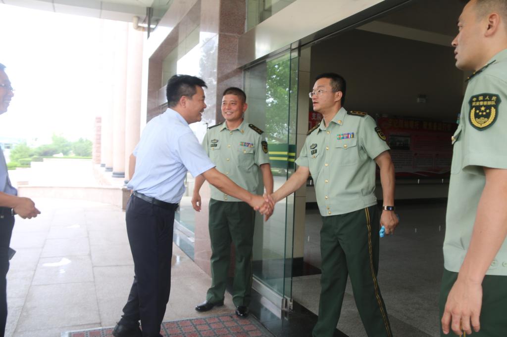 7月31日上午,在“八一”建军节来临之际,校区管委会副主任贾长响、学生处副处长牛进社及学生处国防教育中心李科老师一行3人到武警泰安支队走访慰问,向支队广大官兵致以节日问候。武警泰安支队政治委员刘伟、参谋长曹茂飞、政工处主任刘锟接待了贾长响一行。