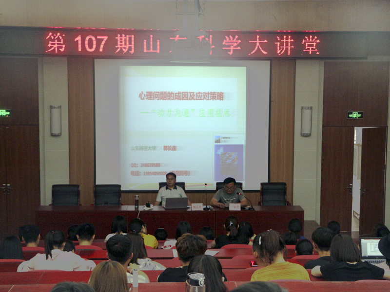 5月24日,由山东省科协、省教育厅、省科技厅、省卫健委主办,3044永利集团官网泰安校区承办的第107期山东科学大讲堂于西校园八角楼报告厅成功举办。本期讲堂主讲人为3044永利集团官网心理咨询师、心理健康专家郭长连老师,学生工作处王新亮老师主持了大讲堂。