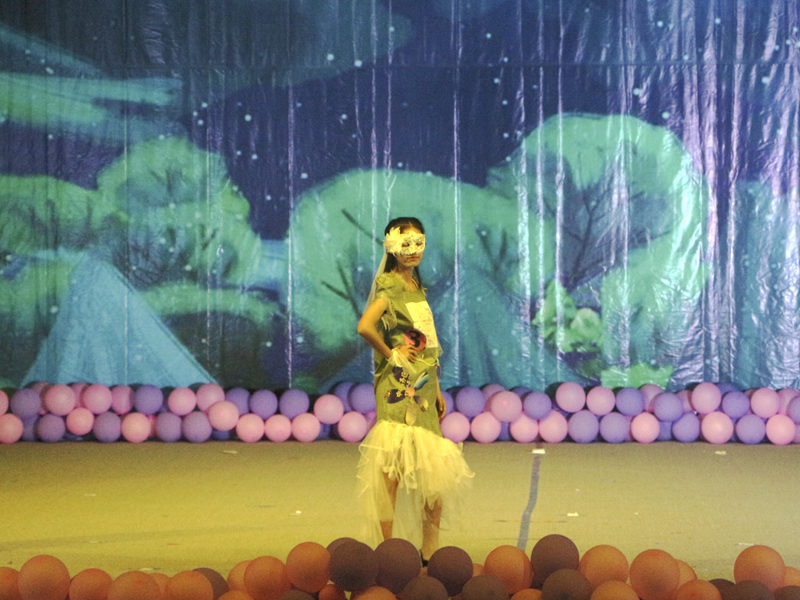 本次大赛分为森林舞会和绿色校园两个环节。比赛中,参赛选手将废旧纸张、布料、纸杯、锡箔纸、塑料袋等可循环利用的材料进行个性创作,以回归自然的形象出场,显示出了设计的新颖与独特,给人带来绿色环保的全新视觉感受。其中,6号队伍将针线与布料完美结合,造就出典雅、复古、高贵的黑色短裙,背后的心型翅膀使短裙活力倍增。9号队伍的作品是利用废弃蚊帐、塑料袋和纸制作而成的“美人鱼”裙装,其凸显环保理念的同时展现了青春时尚的魅力。参赛选手围绕环保与创意两大主题,给观众们带来一场视觉的盛宴,也让大家看到了废弃品制作的环保服装的实用性,赢得了评委老师与同学们的一致赞赏。经过激烈的比拼,5号队伍获得一等奖,8号、9号队伍获得二等奖,1号、3号、6号队伍获得三等奖。