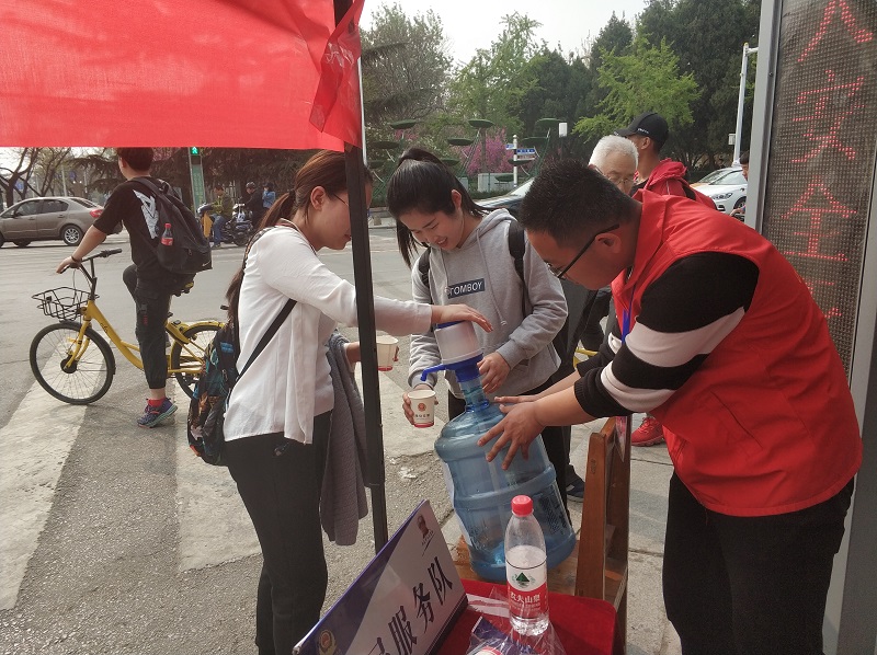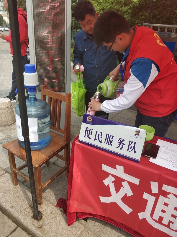 在红门路口,志愿者们热心为游客分发泰安旅游景点图、提供免费饮用水;耐心为他们解答疑难、讲解安全出游知识;并协助交警同志指挥交通,为游客安全出行、畅通出行尽绵薄之力。4月6日在韩建军示范岗,记者遇到泰安市志愿服联合会监事会主席吴秀新,他说:“听说科大志愿者自2010年在岱宗坊岗亭建立志愿者服务基地近10年来,‘黄网格’志愿者们无论是周末还是节假日志愿服活动从未间断过,今天特意来看看,感触颇深,科大志愿者们积极主动、服务周到、素质较高,非常敬佩,真心为他们点赞!”
