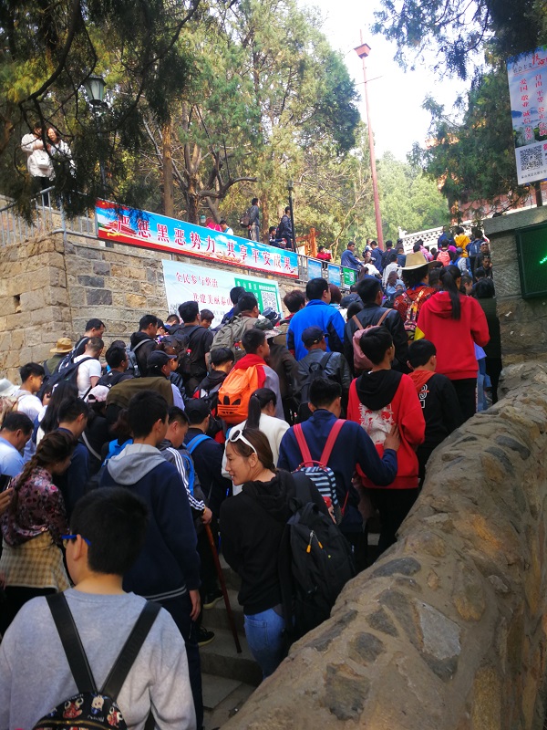 在泰山万仙楼,志愿者们耐心引导游客有序购票、检票等,详细讲解购票流程、游览路线;有时还亲自使用手机AAP为游客买票;在遇到外国游客时,主动用英文与其交流,了解其需求,协助解决困难。泰山管委红门站公维宁告诉记者,“4月5日0时至4月7日16时,泰山接待游客超10万人次,部分时段为了保证游客安全不得不限时通过,在维持秩序、购票服务、劝解说服等方面,科大“青未了”志愿者们均为我们做出了突出贡献!”