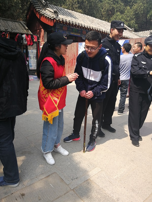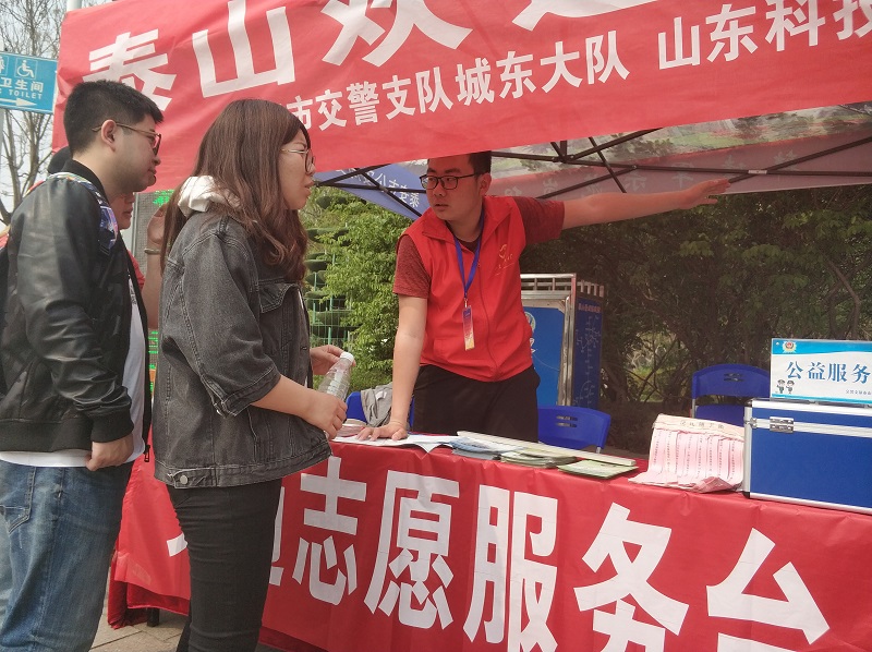 4月5日至7日清明节期间,科大“黄网格”、“青未了”志愿服务队志愿者们在各自服务基地开展志愿服务活动,为泰山游客安全出行、快乐旅游保驾护航。