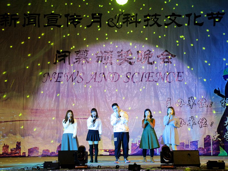12月8日,由校区、学院团委主办,校区、学院学生会东西校大学生新闻中心和科技联合会承办的新闻宣传月和科技文化节闭幕式暨颁奖晚会在东校园礼堂成功举办。
