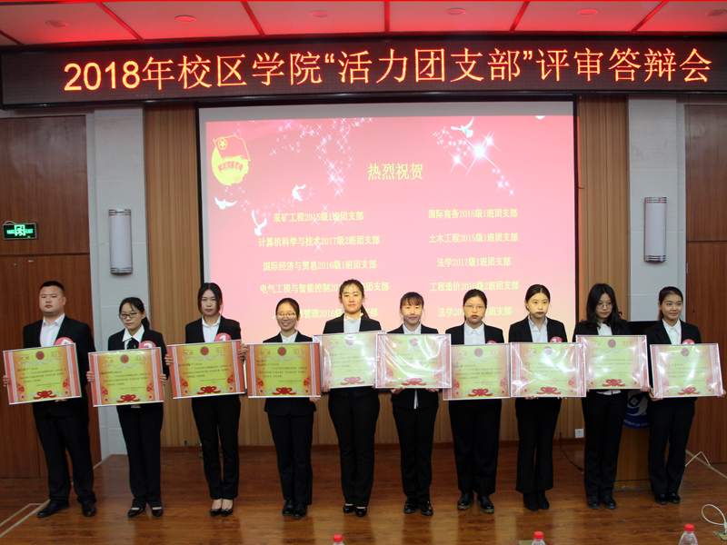 最终,采矿工程2015级1班、国际商务2015级1班、计算机科学与技术2017级2班、土木工程2015级1班、国际经济与贸易2016级1班、法学2017级1班、电气工程与智能控制2016级1班、工程造价2016级2班、人力资源管理2016级1班、法学2017级3班十个参审团支部荣获校区、学院“活力团支部”荣誉称号。
