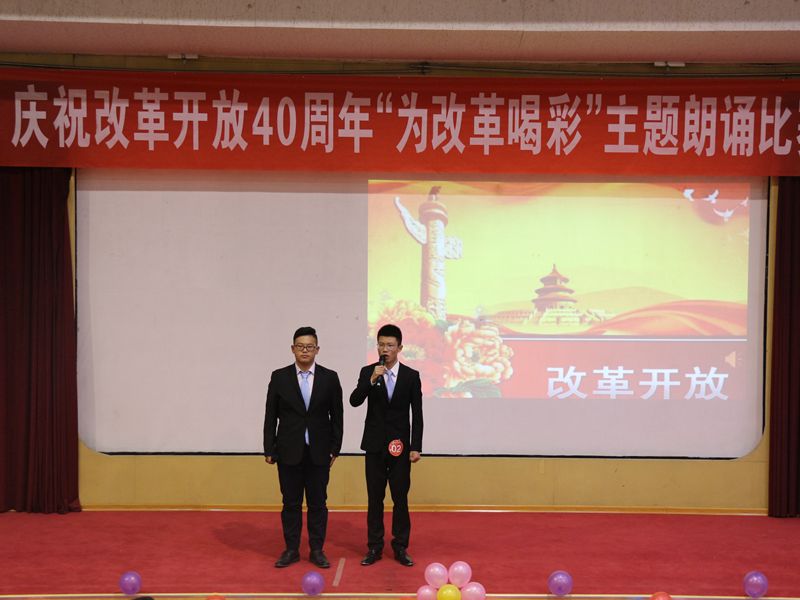 本次比赛主要以朗诵形式开展,来自各系的10支代表队伍,共12名选手参加。比赛开始前,学生会工作人员精心布置场地和调试设备,并组织人员按顺序就坐,为确保活动的顺利进行。下午2点10分,比赛正式开始。少年中国队以朗诵《铭记》为题拉开序幕,动情的朗诵仿佛将祖国母亲经历的沧桑娓娓道来。青春无限队以《改革铸辉煌,奋斗成梦想》为题,以诗言志,热情讴歌了改革开放40周年我国经济社会发展获得的辉煌成就,以最真挚的声音向改革开放献礼。活动现场气氛热烈,选手们精彩的朗诵赢得了台下观众的阵阵喝彩。最终,以大学生艺术团声乐部陈侃带来的一首《追寻》圆满结束。