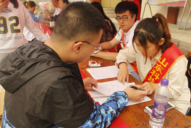 在为期两天的献血活动中,同学们积极踊跃参加此次爱心献血活动,承担社会责任,用实际行动诠释了“无偿献血,情暖社会”的主题。上午8时活动正式开始,随着泰安市红十字会中心血站的车缓缓驶进校园,学校的志愿者们早已摆好桌子和帐篷,等待医护人员的到来。炎炎烈日并没有消耗掉学生的热情,献血的同学络绎不绝,他们有序的排起长队,依次进行信息登记、血液类型检验、静脉采血等环节。志愿者与医护人员为同学们讲解了献血的注意事项和相关知识,为同学们提供了一个安全且安心的献血环境。同时,工作人员根据志愿献血同学的体质,给出合理的献血建议,并且悉心告知献血后的注意事项。